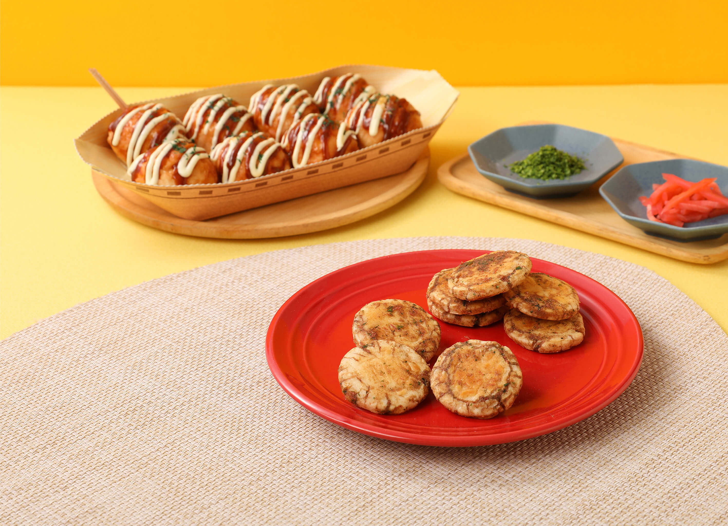 甘辛ソースの香りと、たこ・紅生姜・かつお節・マヨネーズ・あおさの旨味をぎゅっと閉じ込めました。